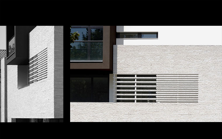On the outside the building consists of a system of ventilated walls in cotto creating an attractive visual effect with the open and closed sections of the masonry, the windows and half-open areas, the balconies divided by ventilated walls and the glassed-in area.