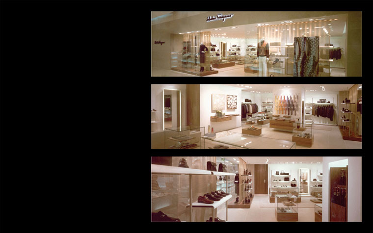 Layout design for several boutiques, shop in shops e corners Salvatore Ferragamo in the most prestigious locations in the world, luxury department store and new airport terminals included.